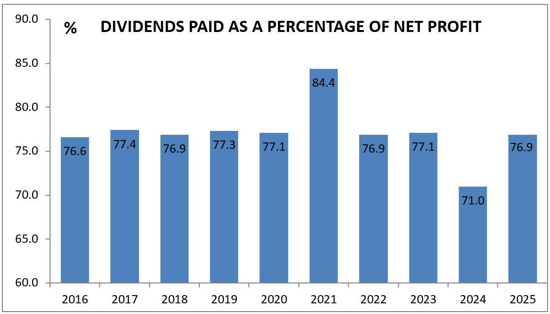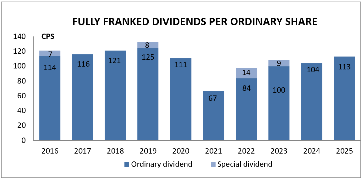Over the ten year period to 30 June 2024 fully franked dividends have been paid to shareholders.